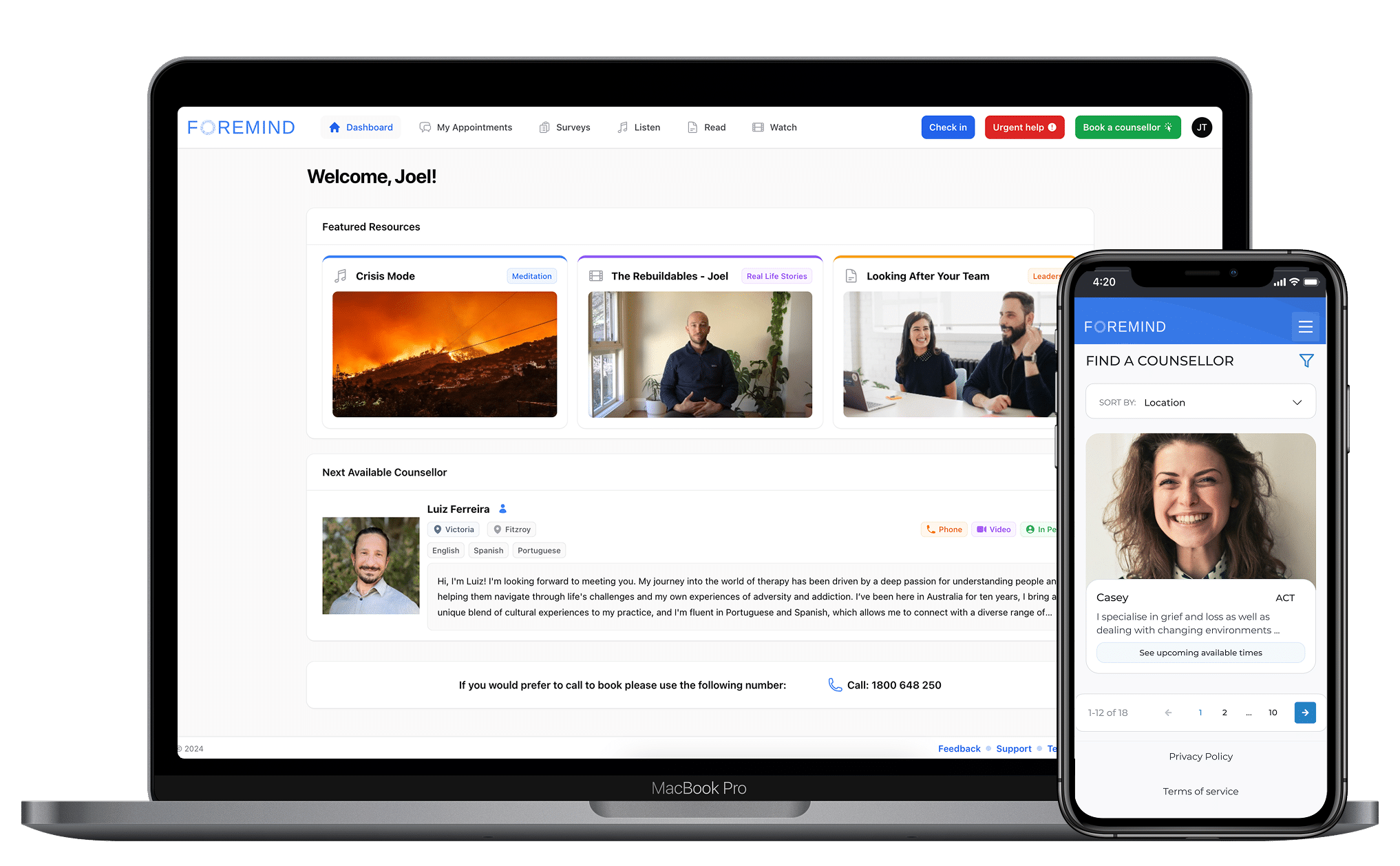 We built Foremind to simplify compliance for businesses while supporting worker retention, productivity, and mental health.